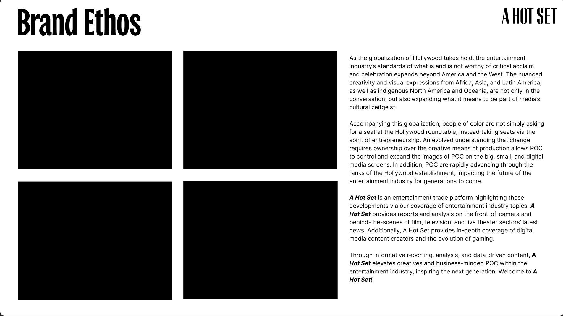 Conducted in-depth research into contemporary media kits across various industries, focusing on interactivity, visual storytelling, and user engagement. Analyzed layout structures, typography choices, and branding elements to inform design direction and align with current industry standards.