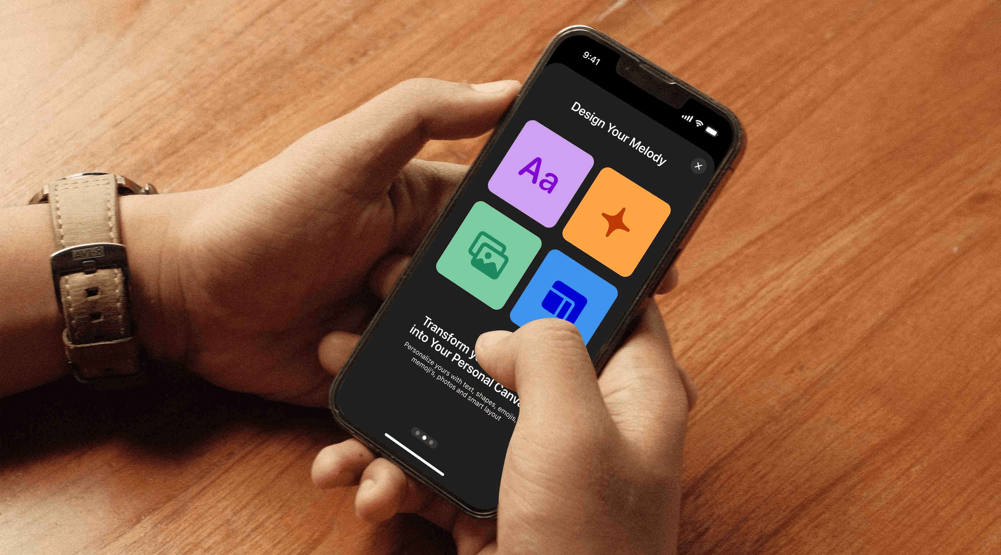Shapes, text, and Memojis